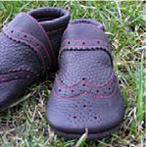 Herr Budapest kommt ganz klassisch daher. Die Kanten seines Leders sind gezackt. Er wartet vorne mit einer stilsicheren Flügelkappe samt Lochmuster und Lyra auf, eben ganz wie der klassische Herrenschuh. Ein Gummizug um den Knöchel hält den Schuh am Fuß.