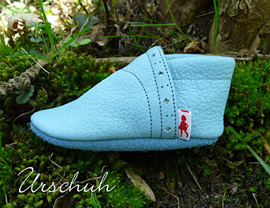 Das allererste Käthchen. Dieser Schuh wurde als zweite Haut zum Krabbeln und für die ersten Gehversuche entwickelt – eben ganz weich und schön rutschfest. Außerdem ist er hübsch anzusehen wegen seiner Blümchenlochung. Ein Gummizug um den Knöchel hält den Schuh am Fuß.