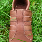Schnell flitzen können sie, die Kleinen, zwar mehr gerudert als gelaufen, aber an den Füßchen tragen sie schon die ersten Streifen ihres Schuhlebens. Die hochgezogene Kappe, auch rutschfest zu haben, sorgt für besonderen Schutz und Schick. Ein Gummizug um den Knöchel hält den Schuh am Fuß.