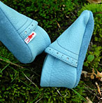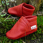 Das allererste Käthchen. Dieser Schuh wurde als zweite Haut zum Krabbeln und für die ersten Gehversuche entwickelt – eben ganz weich und schön rutschfest. Außerdem ist er hübsch anzusehen wegen seiner Blümchenlochung. Ein Gummizug um den Knöchel hält den Schuh am Fuß.
